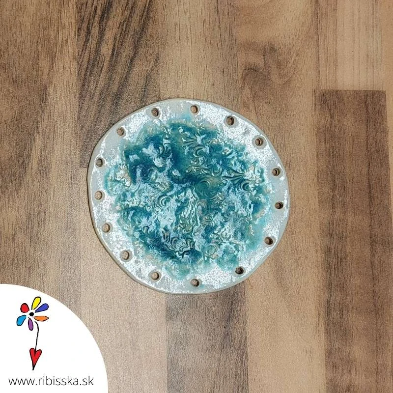 Ručne robené glazované keramické dno. Originál, len jedno tohto druhu. Počet dierok 15. Dno priemer 11cm.